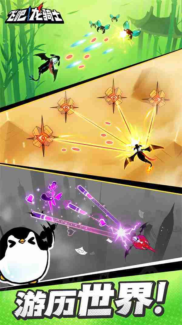 《飞吧龙骑士》是一款集合了飞行弹幕射击、、Roguelike要素和挂机养成的休闲手游,,极具创意的吞食子弹反击玩法,,突破传统飞行射击的刻板限制,,,带来了独特的爽快清屏体验。。。。